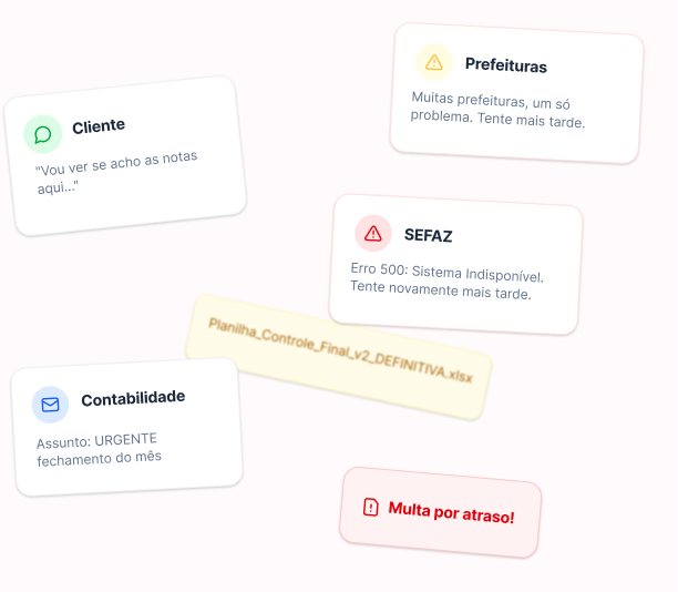 NF-e, NFC-e e NFS-e organizadas em um só lugar, sem depender do envio do cliente.